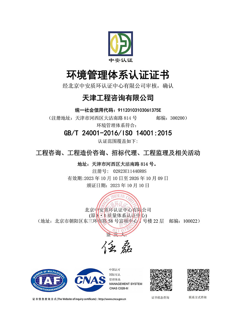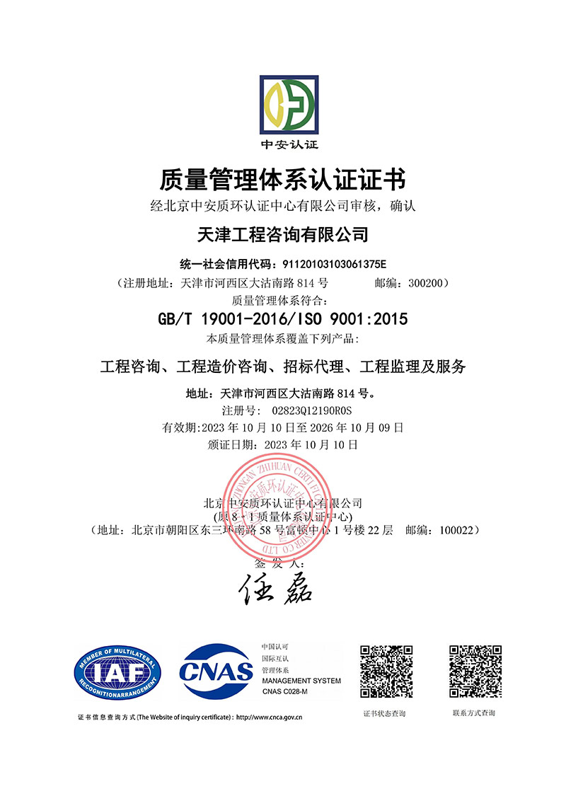 同時(shí),為進(jìn)一步規(guī)范公司內(nèi)部管理,保障服務(wù)質(zhì)量,向管理要效益,天津咨詢啟動(dòng)了ISO三大管理體系認(rèn)證工作。本次通過ISO三大管理體系認(rèn)證審核,對(duì)于公司完善管理體系,推動(dòng)質(zhì)量、環(huán)境、職業(yè)健康安全管理體系持續(xù)有效運(yùn)行,進(jìn)一步提高管理水平具有重要意義,不僅有助于增強(qiáng)企業(yè)競(jìng)爭力,而且樹立了優(yōu)良企業(yè)形象。