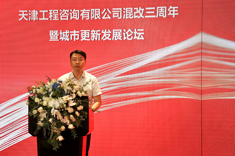 天津市國資委改革處副處長袁薔致辭。代表市國資委向天津咨詢混改三周年表示祝賀,也向關心和支持天津國資國企改革發(fā)展的各界朋友表示感謝。天津咨詢混改三年引進了先進的管理理念和經(jīng)營機制,實現(xiàn)了國有資產(chǎn)的保值增值,扎根天津、服務天津,加深了津滬兩地國資國企之間的合作與共贏。希望天津咨詢保持向好發(fā)展。不斷拓寬經(jīng)營思路,健全經(jīng)營機制,努力挖掘自身優(yōu)勢,提高企業(yè)核心競爭力,為混改后天津國資參股企業(yè)保持更好更快發(fā)展樹立典型。希望天津咨詢服務天津發(fā)展。主動融入和服務“十項行動”,持續(xù)推進“三新”“三量”工作,抓住有利時機,充分發(fā)揮在城市更新、資產(chǎn)盤活等方面的咨詢技術優(yōu)勢,為天津的城市建設和經(jīng)濟發(fā)展“添秤”。希望天津咨詢發(fā)揮紐帶作用。繼續(xù)穩(wěn)步推進改革,將上海國企的先進理念引入天津,進一步發(fā)揮好上海國資和天津國資之間的紐帶作用,為推動雙方互利共贏做出積極貢獻。