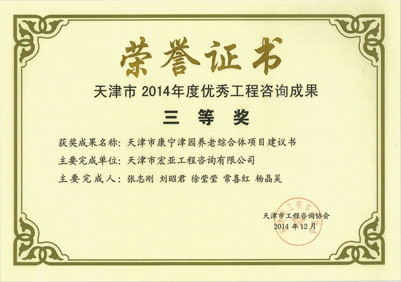 優(yōu)秀咨詢成果三等獎(jiǎng)(2014)