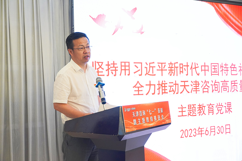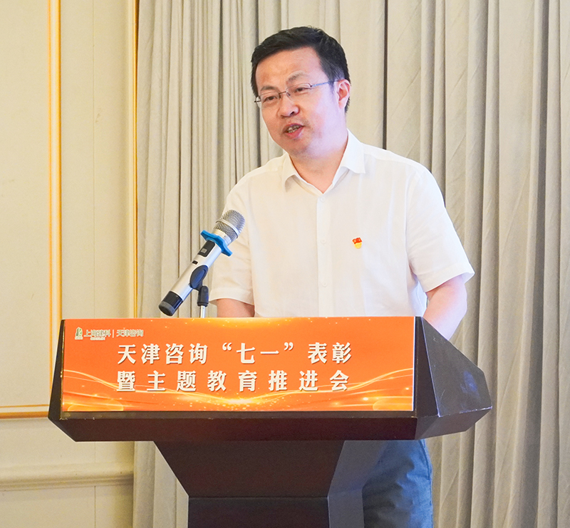 6月30日下午,天津工程咨詢有限公司黨委召開“創(chuàng)先爭優(yōu)強(qiáng)擔(dān)當(dāng),攻堅突破顯作為”—天津咨詢“七一”表彰暨主題教育推進(jìn)會。集團(tuán)副總經(jīng)濟(jì)師、調(diào)研員,天津咨詢領(lǐng)導(dǎo)班子、部門經(jīng)理及本部全體黨員,各事業(yè)部、子公司領(lǐng)導(dǎo)班子、部門負(fù)責(zé)人、黨務(wù)干部及黨員、受表彰先進(jìn)代表現(xiàn)場參加會議。系統(tǒng)全體黨員同步線上收看大會視頻直播。公司黨委委員、副總經(jīng)理朱震主持會議。