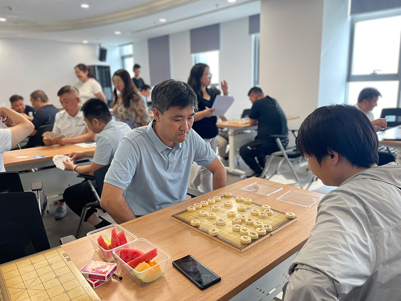 “楚河對(duì)漢界、摜蛋斗地主”。棋牌比賽中,大家“切磋棋藝,以牌會(huì)友”,個(gè)個(gè)沉著冷靜,思路敏捷。在楚河漢界之間縱橫車馬、調(diào)兵遣將;在方寸撲克之中,聚精會(huì)神,沉著應(yīng)戰(zhàn),憑借默契的配合,讓“戰(zhàn)局”高潮迭起。