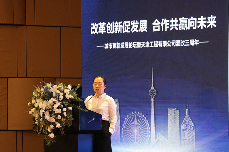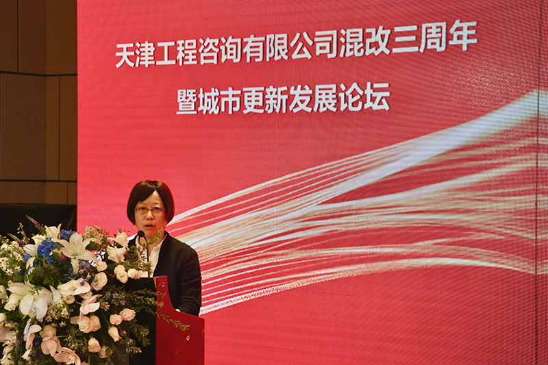 天津市國資委改革處副處長袁薔致辭。代表市國資委向天津咨詢混改三周年表示祝賀,也向關心和支持天津國資國企改革發(fā)展的各界朋友表示感謝。天津咨詢混改三年引進了先進的管理理念和經(jīng)營機制,實現(xiàn)了國有資產(chǎn)的保值增值,扎根天津、服務天津,加深了津滬兩地國資國企之間的合作與共贏。希望天津咨詢保持向好發(fā)展。不斷拓寬經(jīng)營思路,健全經(jīng)營機制,努力挖掘自身優(yōu)勢,提高企業(yè)核心競爭力,為混改后天津國資參股企業(yè)保持更好更快發(fā)展樹立典型。希望天津咨詢服務天津發(fā)展。主動融入和服務“十項行動”,持續(xù)推進“三新”“三量”工作,抓住有利時機,充分發(fā)揮在城市更新、資產(chǎn)盤活等方面的咨詢技術優(yōu)勢,為天津的城市建設和經(jīng)濟發(fā)展“添秤”。希望天津咨詢發(fā)揮紐帶作用。繼續(xù)穩(wěn)步推進改革,將上海國企的先進理念引入天津,進一步發(fā)揮好上海國資和天津國資之間的紐帶作用,為推動雙方互利共贏做出積極貢獻。