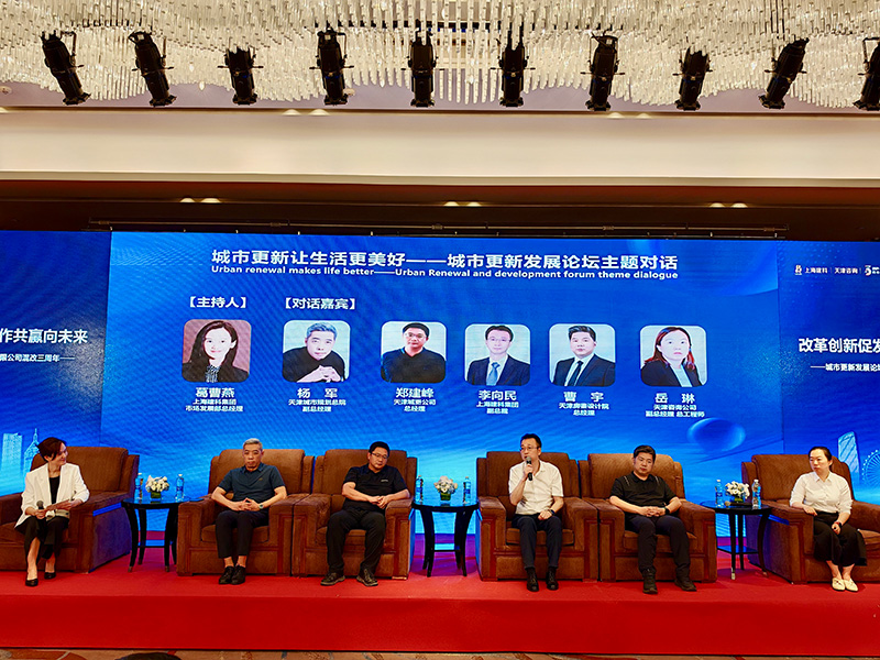 城市更新發(fā)展論壇圍繞城市更新政策引領、新技術應用等領域,共同探討城市更新建設的發(fā)展新理念、新模式、新技術。上海建科集團黨委委員、副總裁李向民、天津城市規(guī)劃總院城市更新分院院長張娜、天津咨詢副總經(jīng)理、總工程師岳琳分別就《城市更新之上海建科研究與實踐》《實施城市更新行動,共劃城市發(fā)展轉型》《天津市城市更新產(chǎn)業(yè)策劃及投融資平衡研究》作專題演講。圍繞城市更新讓生活更美好主題,上海建科集團副總裁李向民、天津城市規(guī)劃總院副總經(jīng)理楊軍、天津房鑒設計院總經(jīng)理曹宇、天津城市更新發(fā)展公司總經(jīng)理鄭建峰、天津咨詢副總經(jīng)理、總工程師岳琳進行“主題對話”。上海建科集團市場發(fā)展部總經(jīng)理葛曹燕主持城市更新發(fā)展論壇。