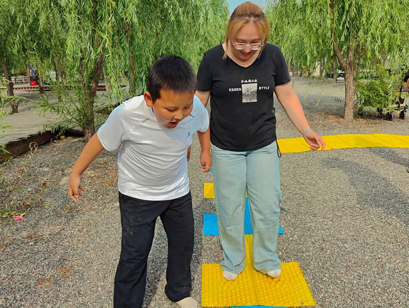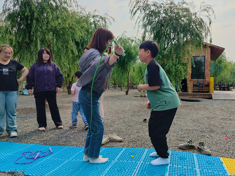最后的指壓板大戰(zhàn)搖身變?yōu)橐粓觥巴觋J關(guān)大挑戰(zhàn)”。大家赤足踏上指壓板,挑戰(zhàn)跳繩、跳格子等經(jīng)典童年游戲任務。腳底雖傳來陣陣酸爽刺激,臉上卻始終綻放著燦爛笑容,咬牙堅持。團隊成員們在一旁奮力吶喊助威,互相鼓舞打氣,齊心協(xié)力共闖難關(guān),在歡笑與互助中凝聚起強大的團隊力量,將活動氛圍推向頂點。