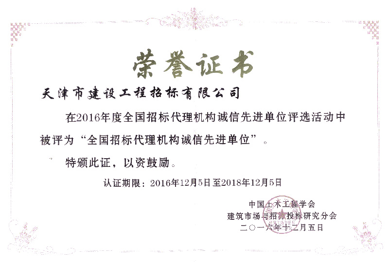 2016年度全國招標(biāo)代理機構(gòu)誠信先進單位