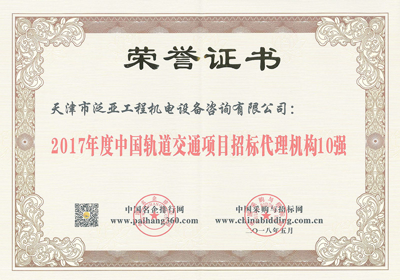 2017軌道交通招標(biāo)10強(qiáng)