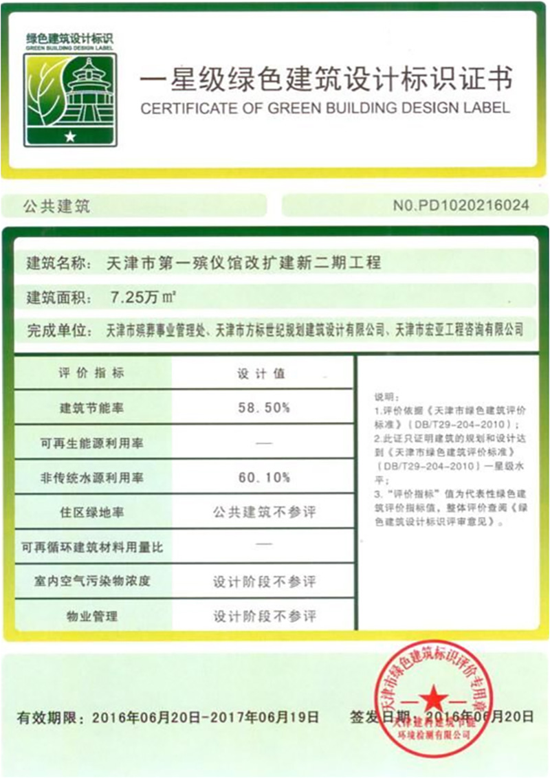 坐落在天津市北辰區(qū)鐵東路(第一殯儀館院內(nèi))??偼顿Y約3.6億元,總建筑面積7.3萬(wàn)平米,地上兩層,地下一層,其中:地上5.3萬(wàn)平米,地下2萬(wàn)平米,框架結(jié)構(gòu),屬于天津市民心工程。該項(xiàng)目于2016年6月通過(guò)專家會(huì)評(píng)審,獲得國(guó)家一星級(jí)綠色建筑設(shè)計(jì)標(biāo)識(shí)。