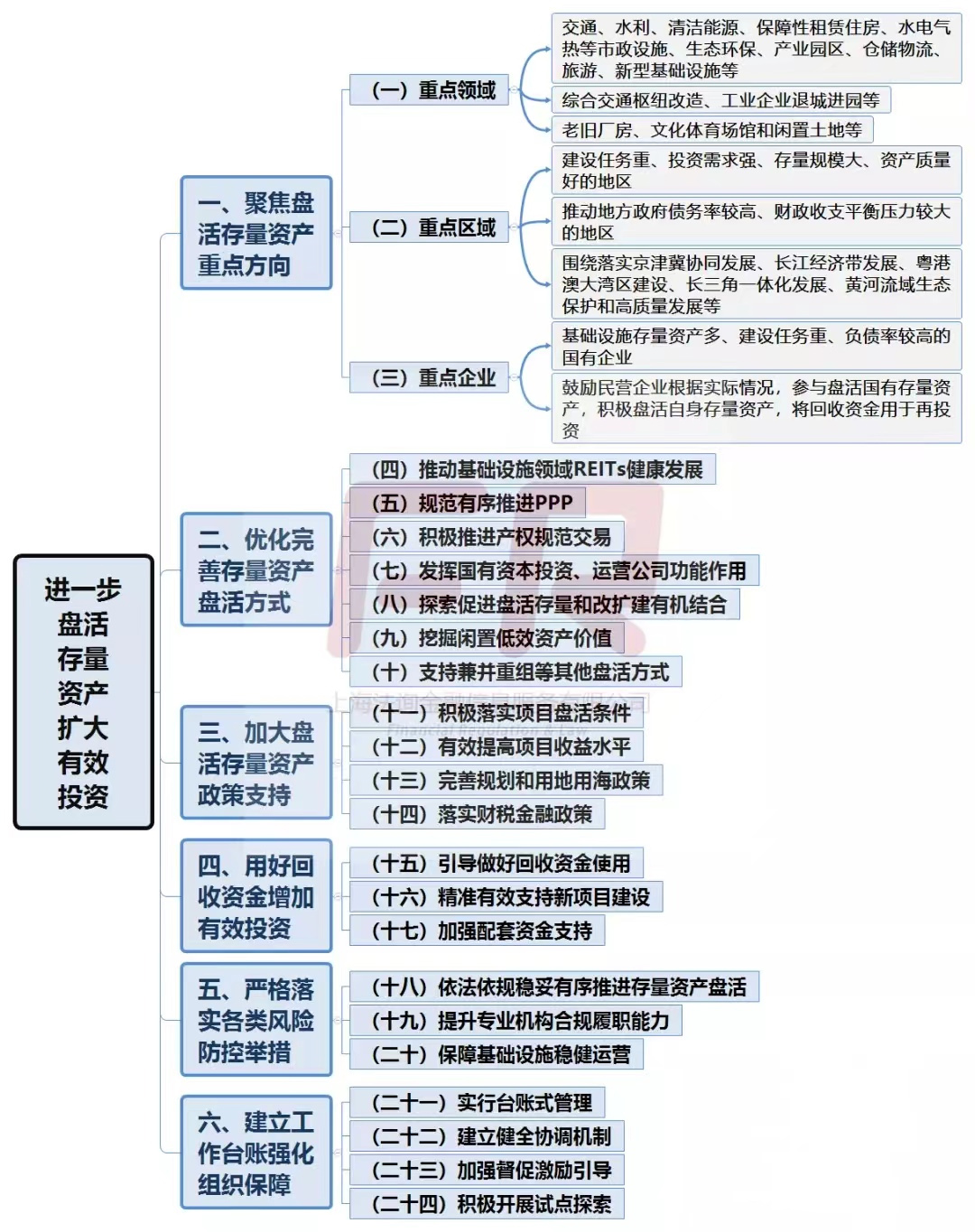 剛剛,國務(wù)院辦公廳發(fā)布《關(guān)于進(jìn)一步盤活存量資產(chǎn)擴(kuò)大有效投資的意見》(國辦發(fā)〔2022〕19號(hào))。新規(guī)共提出24條意見,整體框架如下: